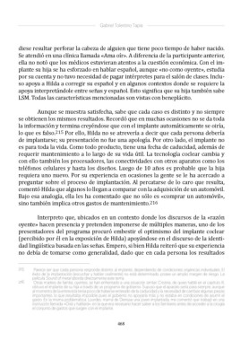 215 Parece ser que cada persona responde distinto al implante, dependiendo de condiciones orgánicas individuales. El