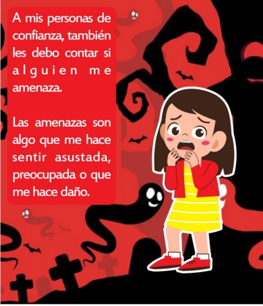 A mis personas de confianza, también les debo contar si a l g u i e n m e amenaza. Las amenazas son algo que me hace sentir asustada, preocupada o que me hace daño.