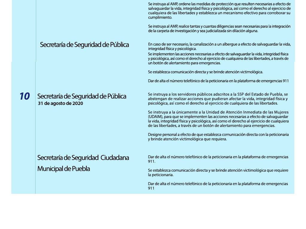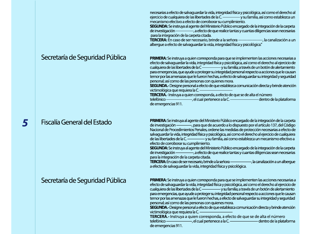 | 8 | 4083-2020 | Derecho a la seguridad jurídica | Físcalia General del Estado | Concluido | Mujer víctima de violencia de género | Personal | Si |