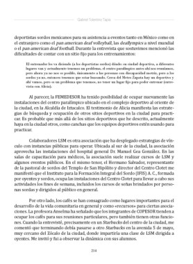 gias de búsqueda y ocupación de otros sitios deportivos en la ciudad para practi-