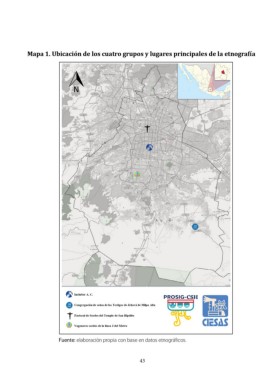 Mapa 1. Ubicación de los cuatro grupos y lugares principales de la etnografía Fuente: elaboración propia con base en datos etnográficos. 43