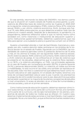lencia escolar en el estado de Puebla. Siguiendo con la ENDIREH, las mo-