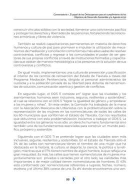 inclusivas, seguras, resilientes y sostenibles. En el Estado de Tlaxcala sólo el
