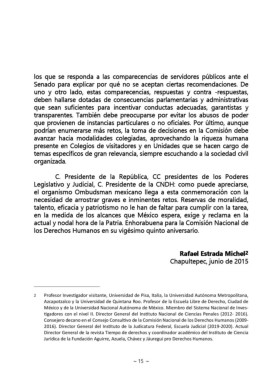 Senado para explicar por qué no se aceptan ciertas recomendaciones. De